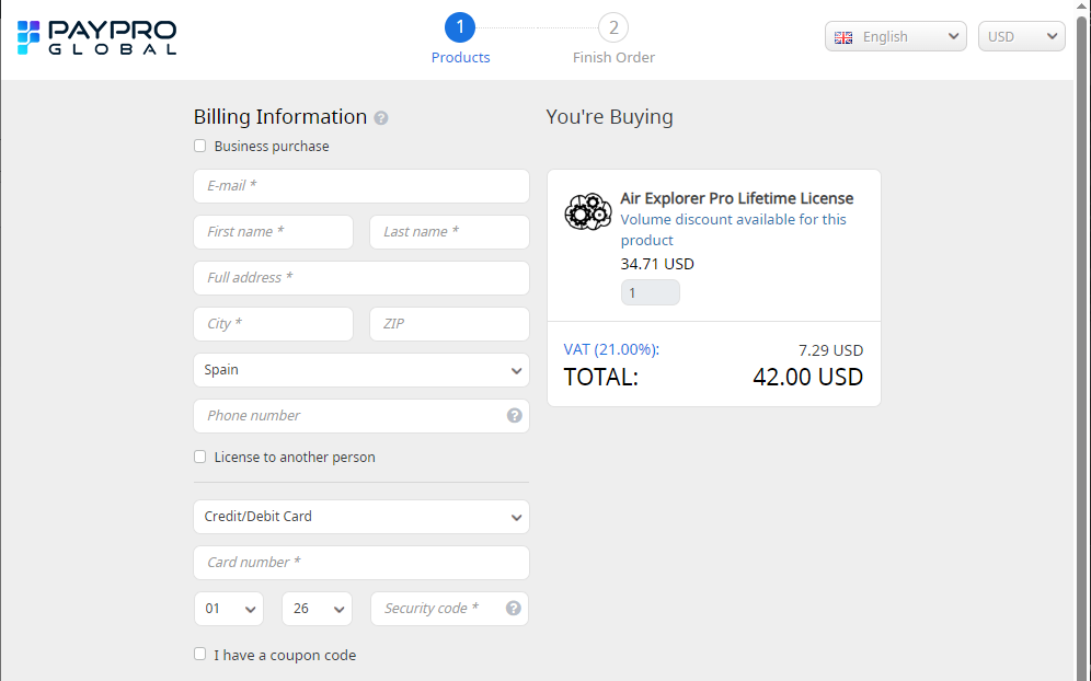 Выберите тип лицензии: 1 год или ПОЖИЗНЕННАЯ и нажмите на ней. Затем перейдете в магазин где необходимо все заполнить и произвести оплату.